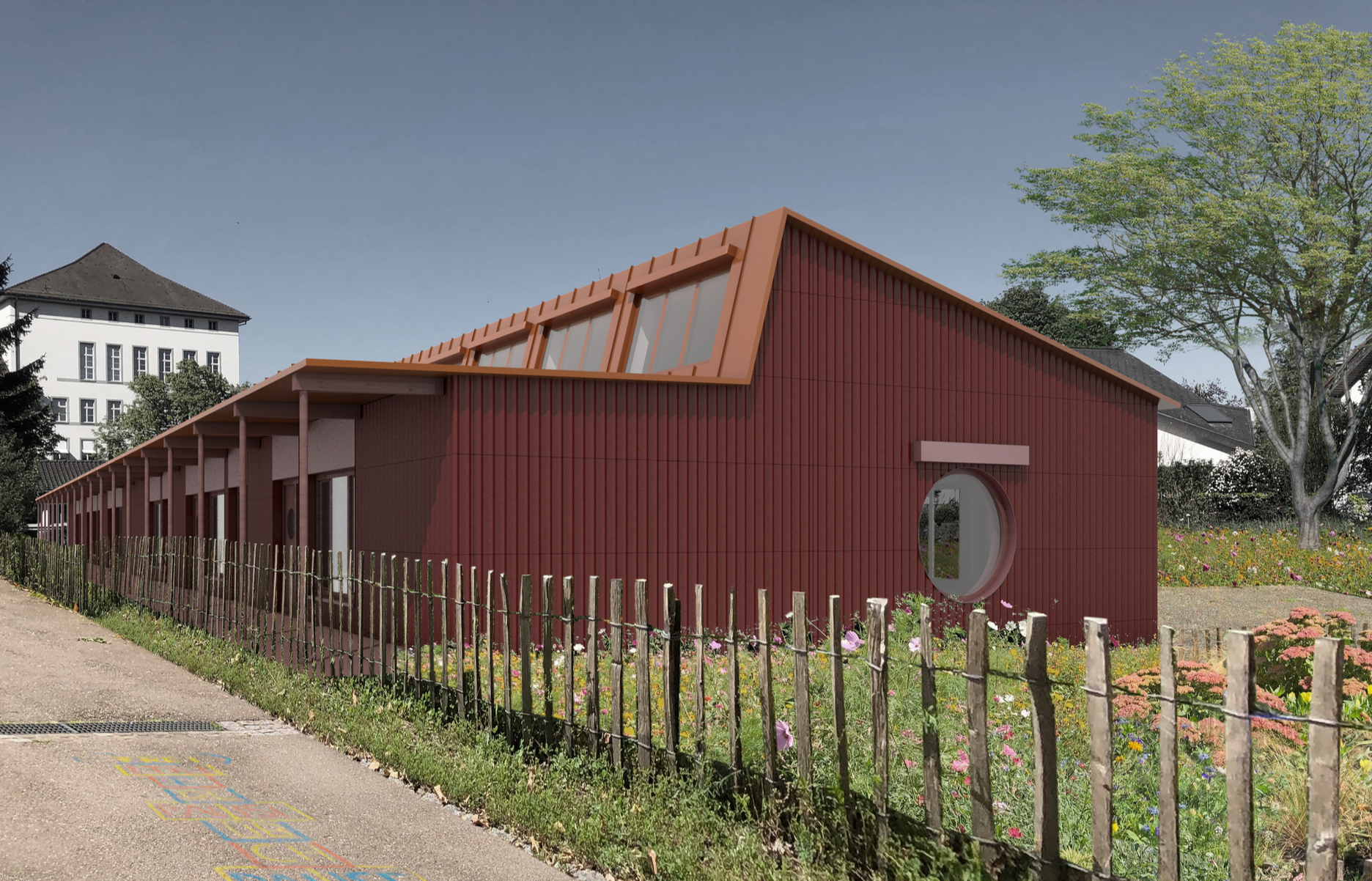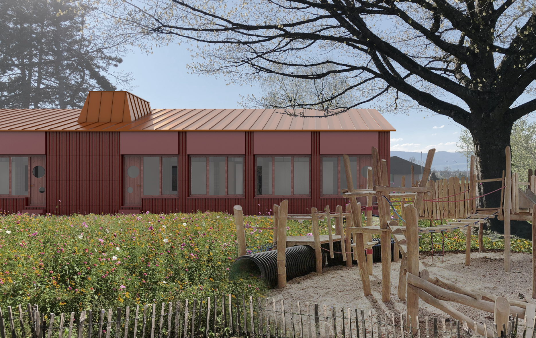 An zwei Standoten sollen Neubauten für einen zweifachen Kindergarten erstellt werden, welche längerfristig um zwei Einheiten erweitert werden sollen. Gesucht wird ein Bauwerk, welches zukünftige Veränderungen in der Nutzung aufnehmen kann. Die Ausgewogenheit der Proportionen, die gewählte statische Struktur des freien Grundrisses sowie die Modularität der Konstruktion lassen Transformation und Wachstum zu.
