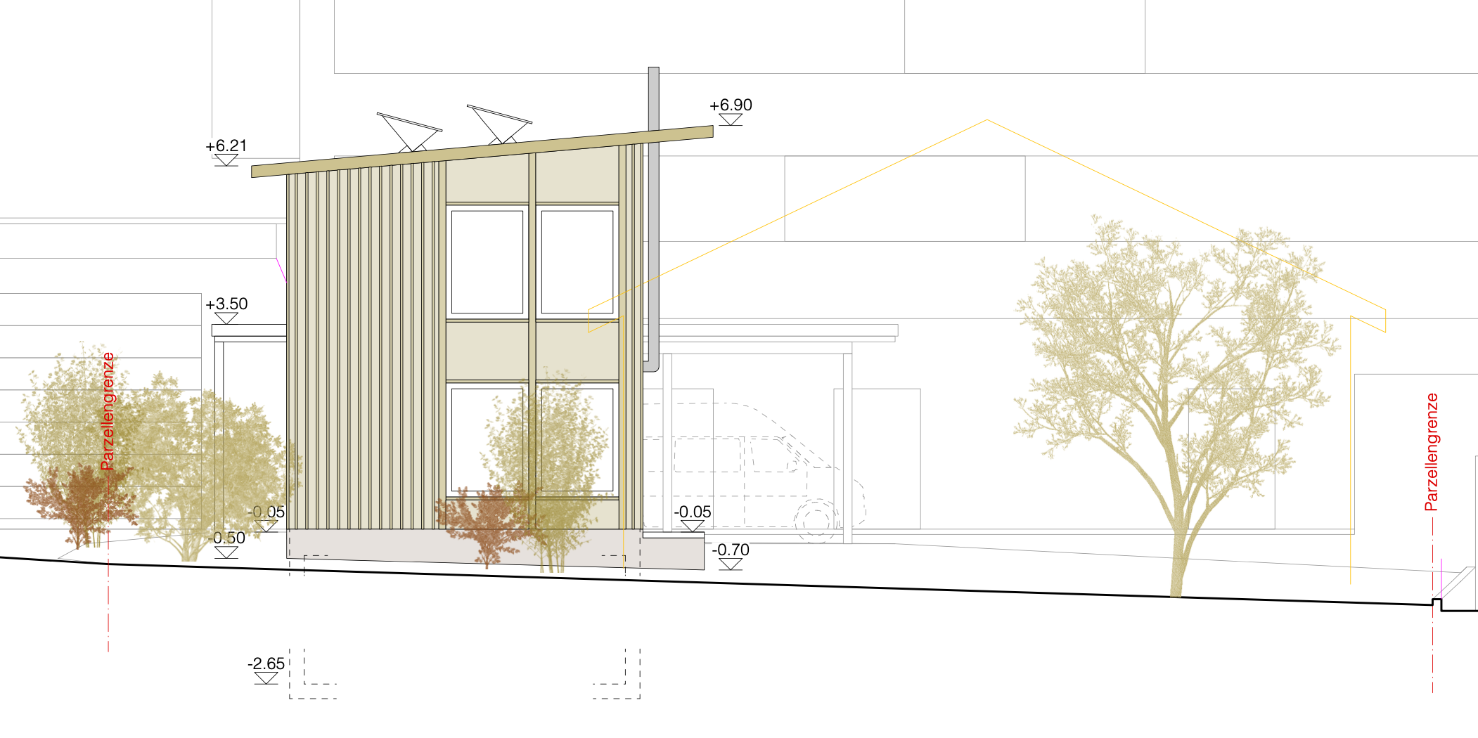 Das Projekt entsteht in enger Zusammenarbeit mit Beer Holzbau, Ostermundigen. ASSL übernimmt federführend die Kommunikation mit der Bauherrschaft und die Planung, unter Berücksichtigung konstruktiver und ausführungstechnischer Vorgaben durch den Holzbauer. Nach erfolgter Baufreigabe wird das Projekt durch Beer Holzbau in Vorfabrikation realisiert.