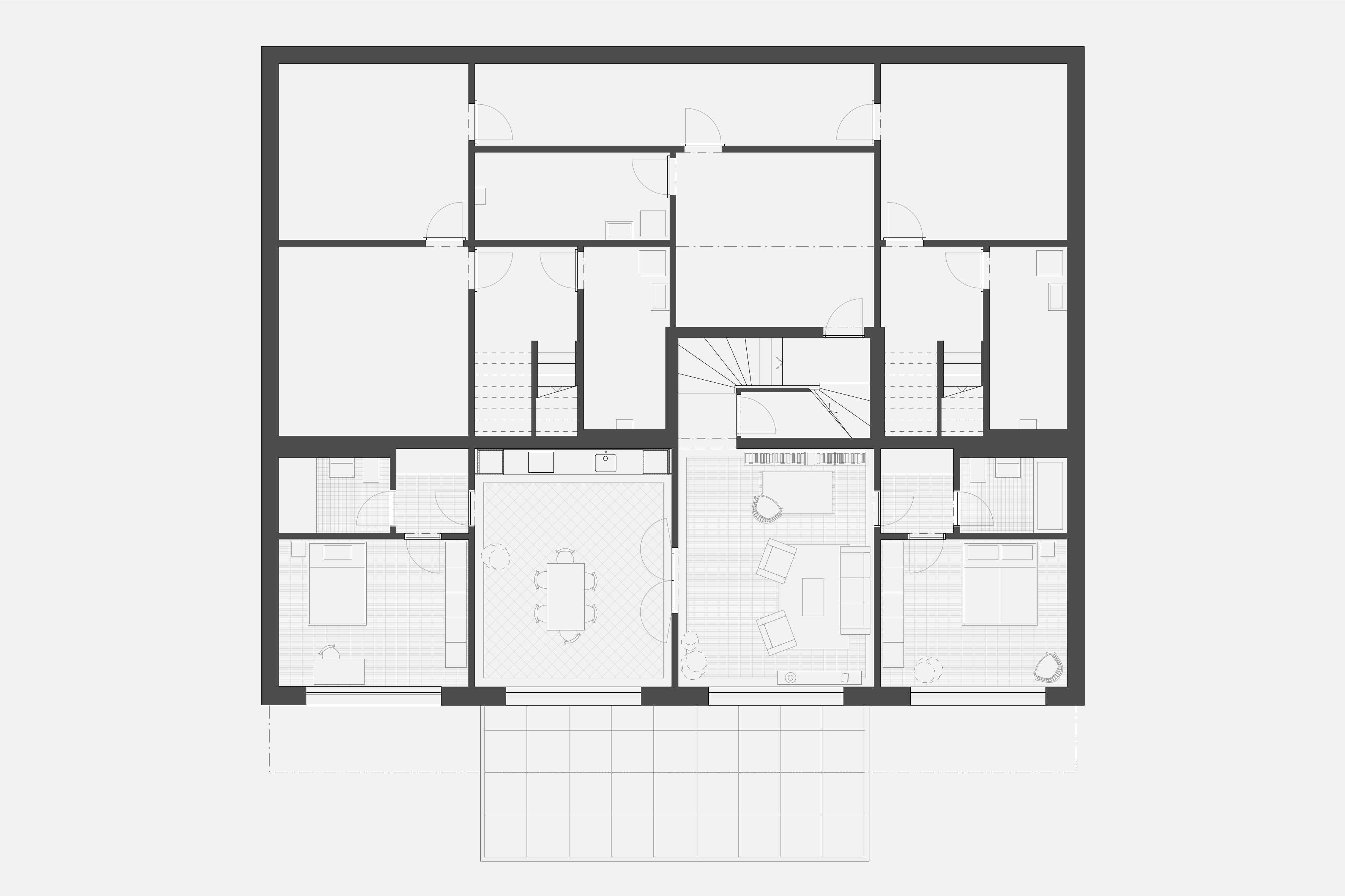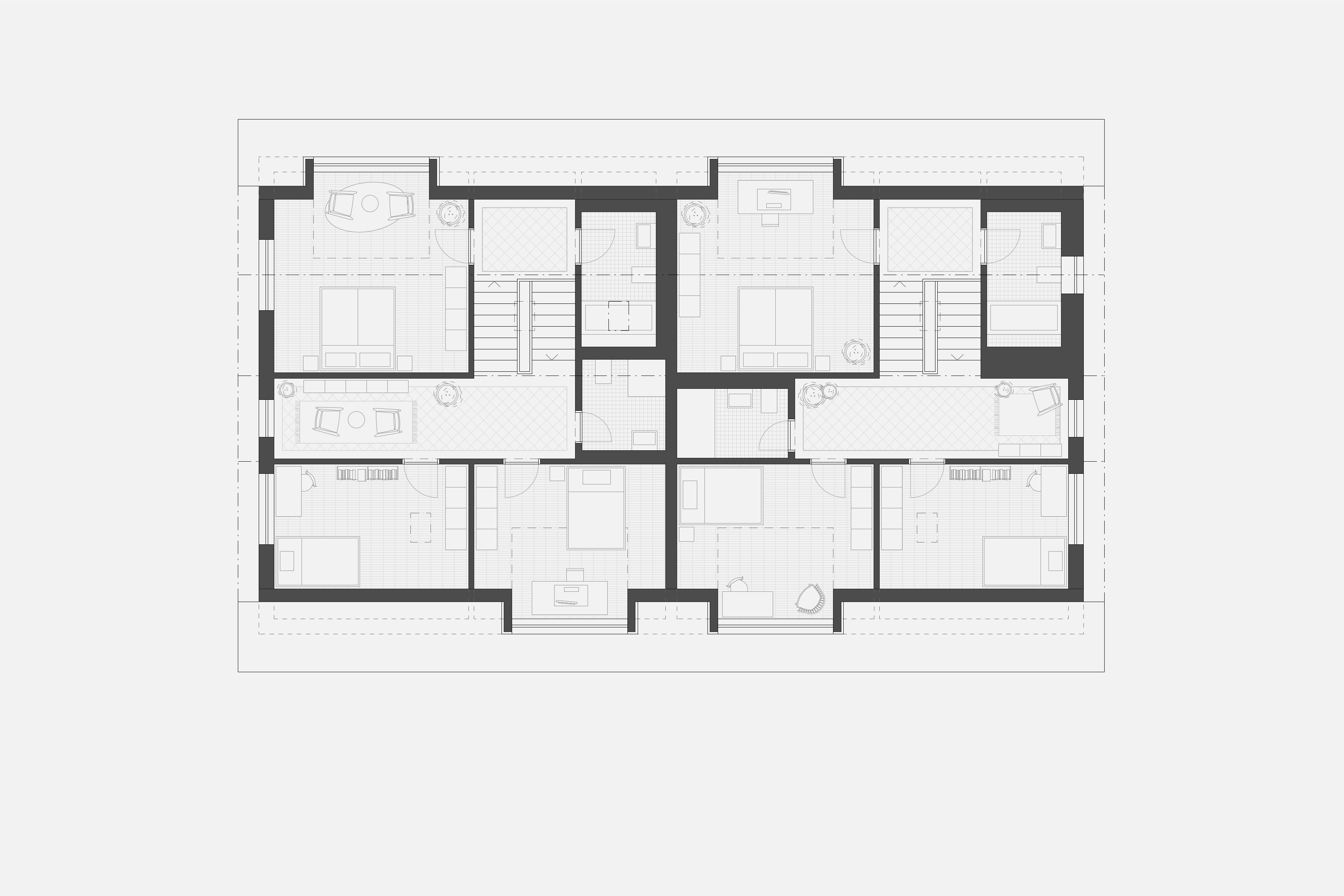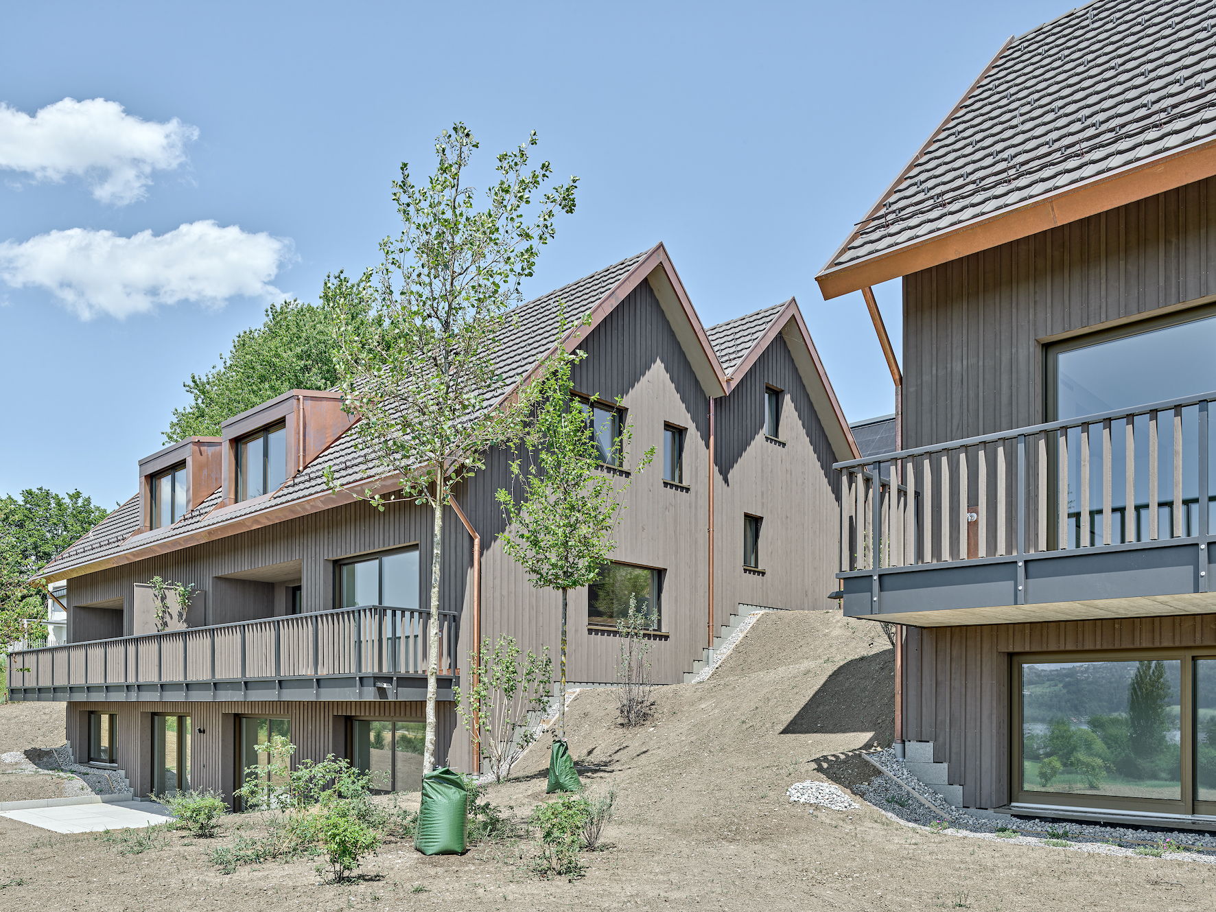 Ein freies Grundstück an bester Lage mit einigen topografische, baurechtlichen und nachbarschaftlichen Herausforderungen steht am Anfang der Geschichte. Durch ein absolut ortsgebundenes und spezifisches Projekt, welches sich in den Landschaftsraum und die Umgebung einbettet, entsteht aus den Gegebenheiten eine vielschichtige Wohnüberbauung mit erlebnisreicher Umgebung.