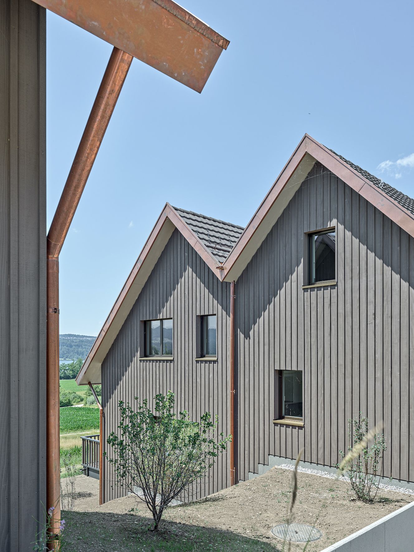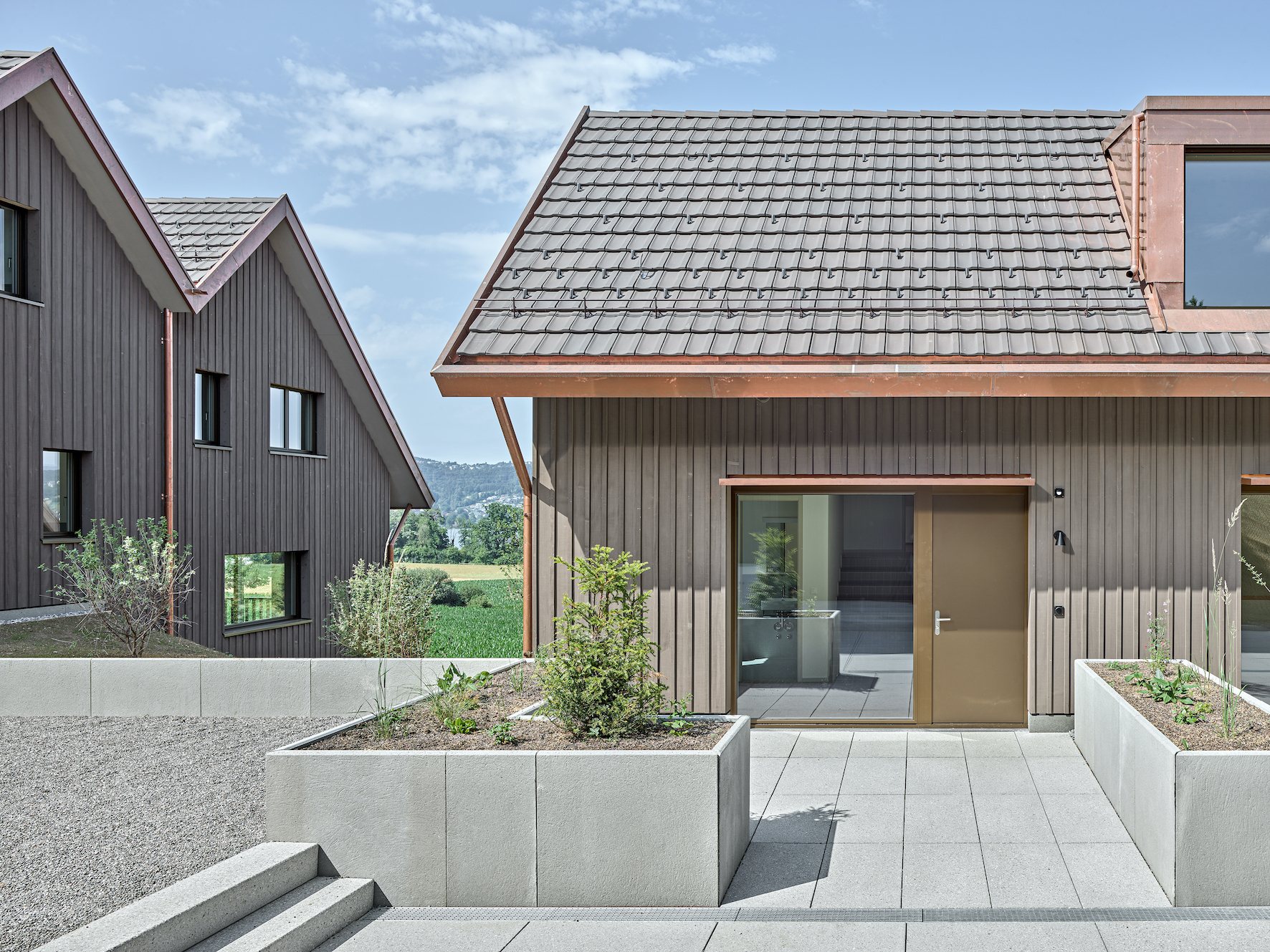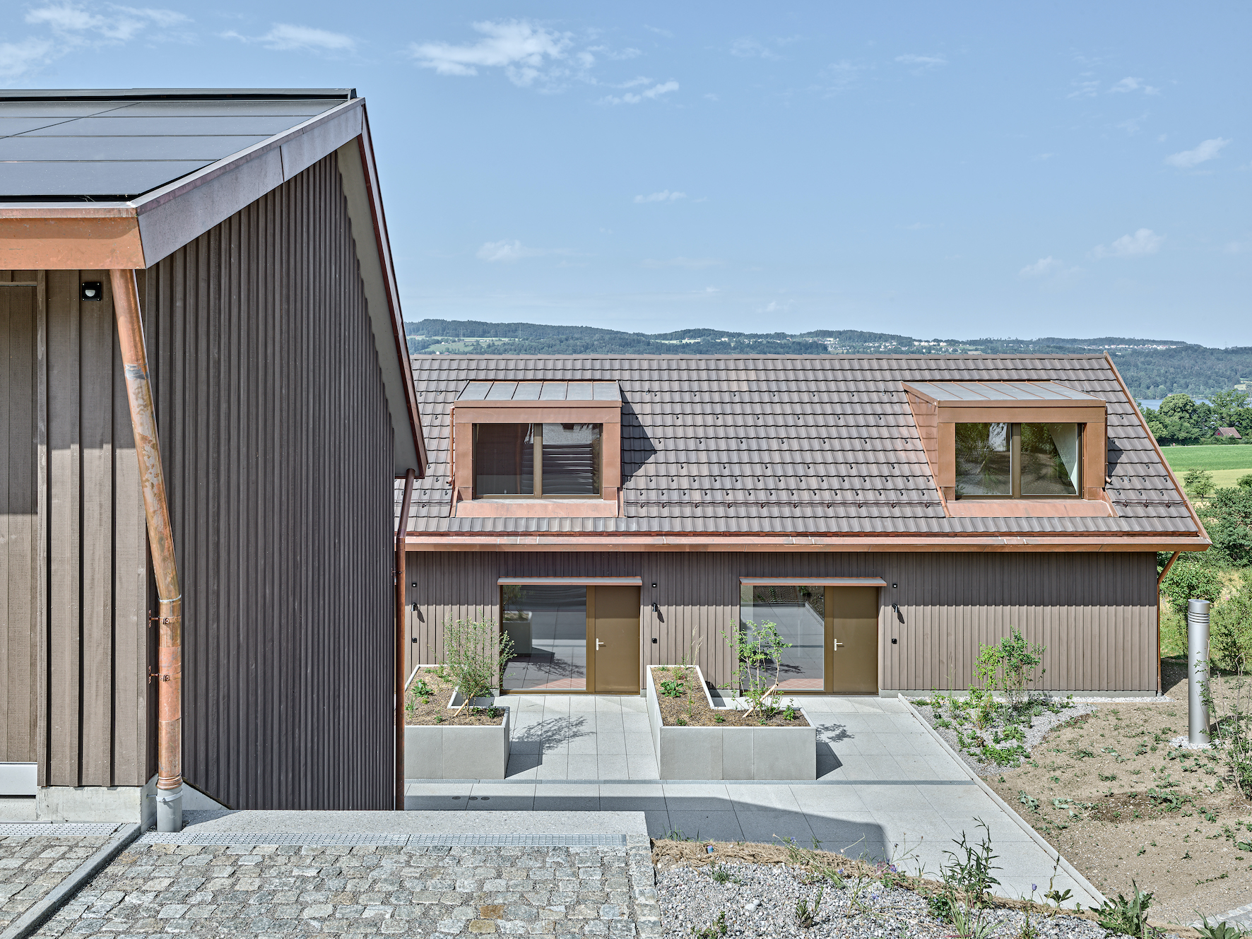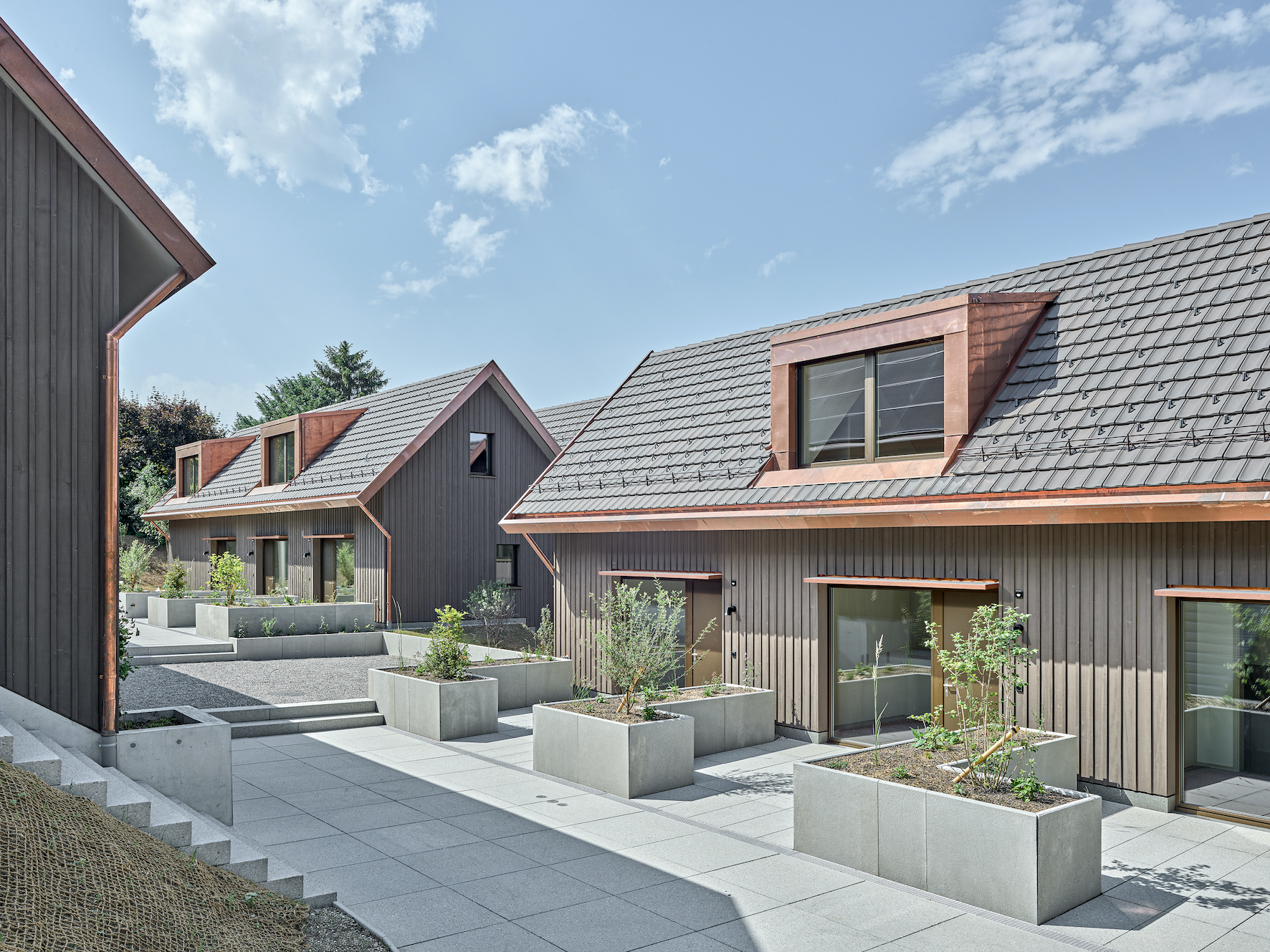 Mit der Dachform, der Materialisierung und der zurückhaltenden Körnung wurde versucht, das Dorf sensibel weiterzubauen und den Bewohnern das Gefühl eines Eigenheimes zu vermitteln. Die nachhaltig gewählten, einfachen Materialien, lassen die Gebäude unverhüllt und echt erstrahlen.