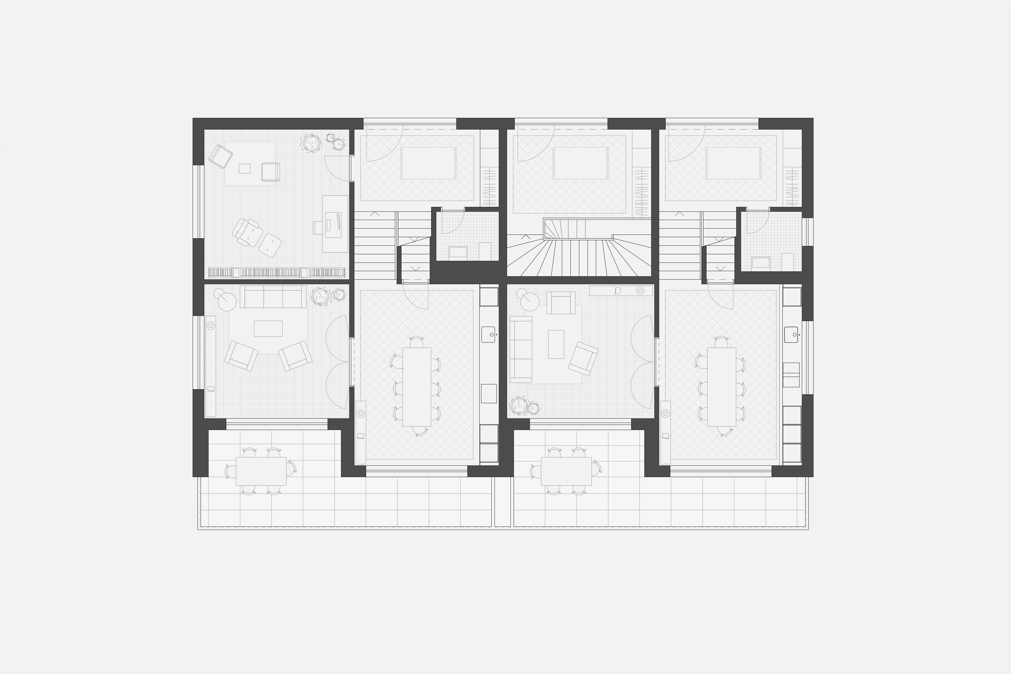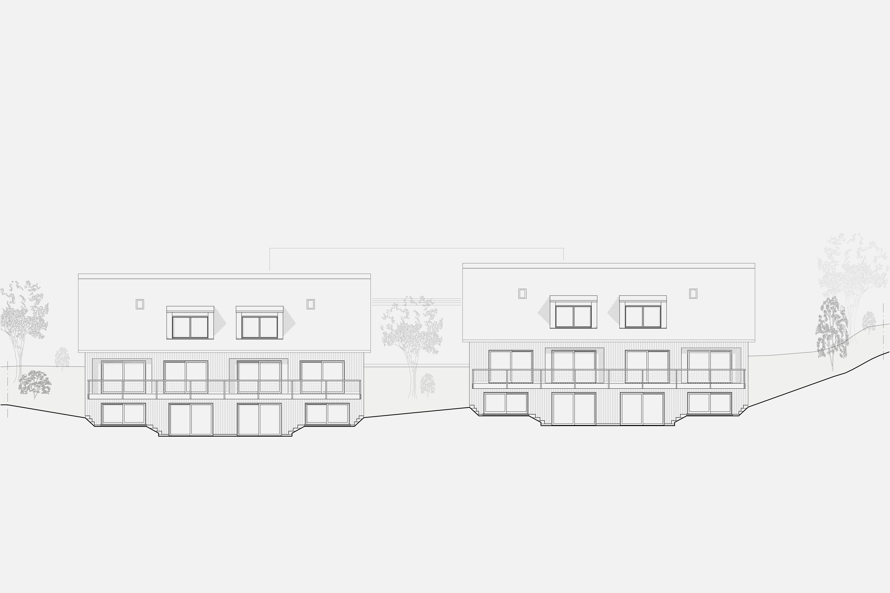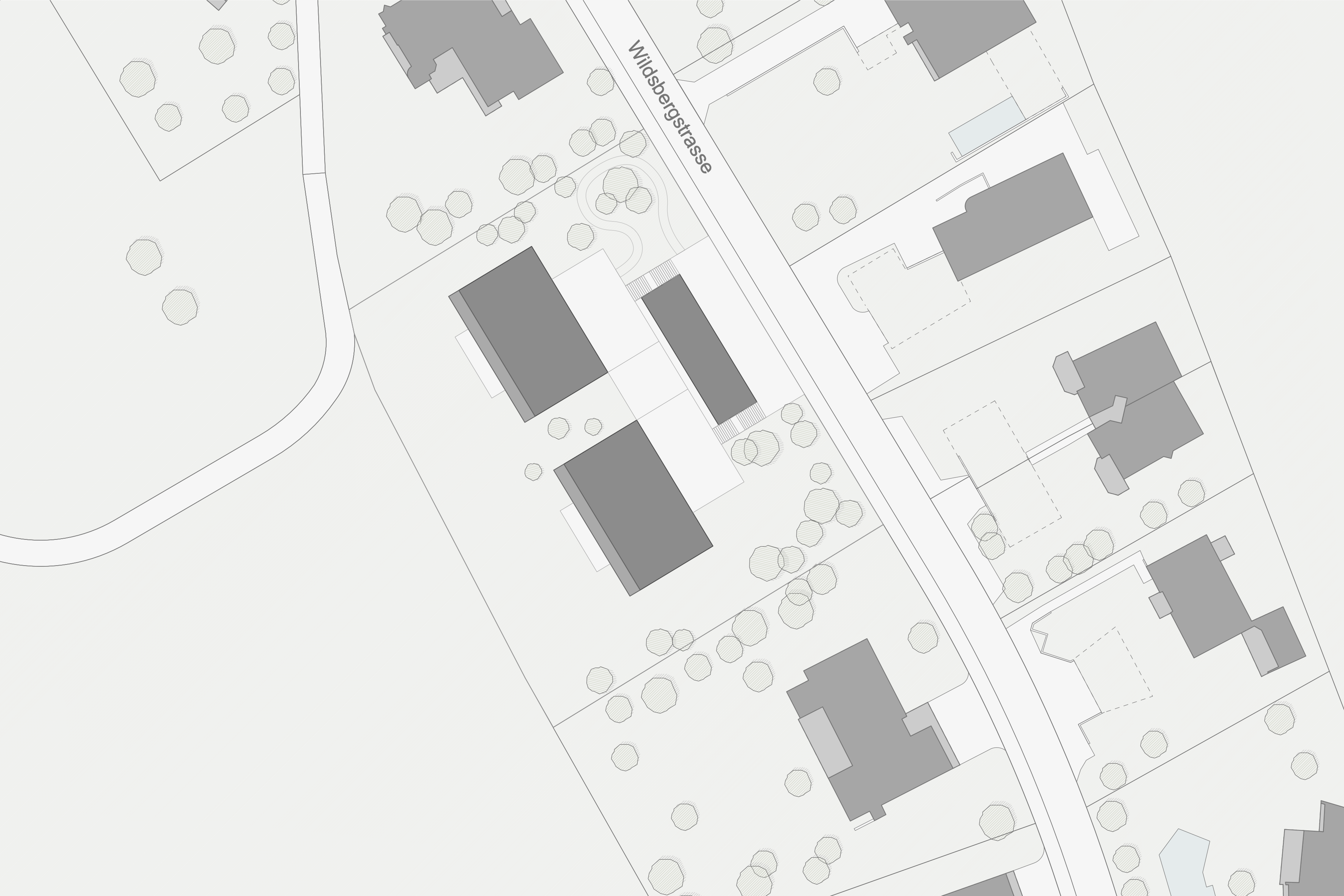 Im einmalig schön gelegenen Greifensee entstehen zwei Wohnhäuser mit je drei grosszügigen Familienwohnungen. Die unverbaubare Weitsicht und der gemeinsame Umschwung verleihen dem Projekt seine Exklusivität. Der Autounterstand als dritter Baukörper schliesst die Überbauung zur Strasse hin ab und hilft beim Auffangen des starken Gefälles.